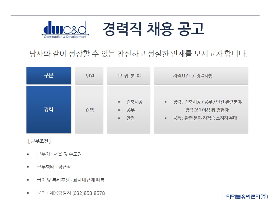 µð´õºíÀ¯¾¾¾Øµð(ÁÖ)(´ëÇ¥ÀÌ»ç ¹æÁ¾¼ö)´Â »ç¾÷ È®´ë¿Í ¼öÁÖ¹°·® Áõ°¡·Î °æ·ÂÁ÷¿ø ä¿ë¿¡ ³ª¼±´Ù.